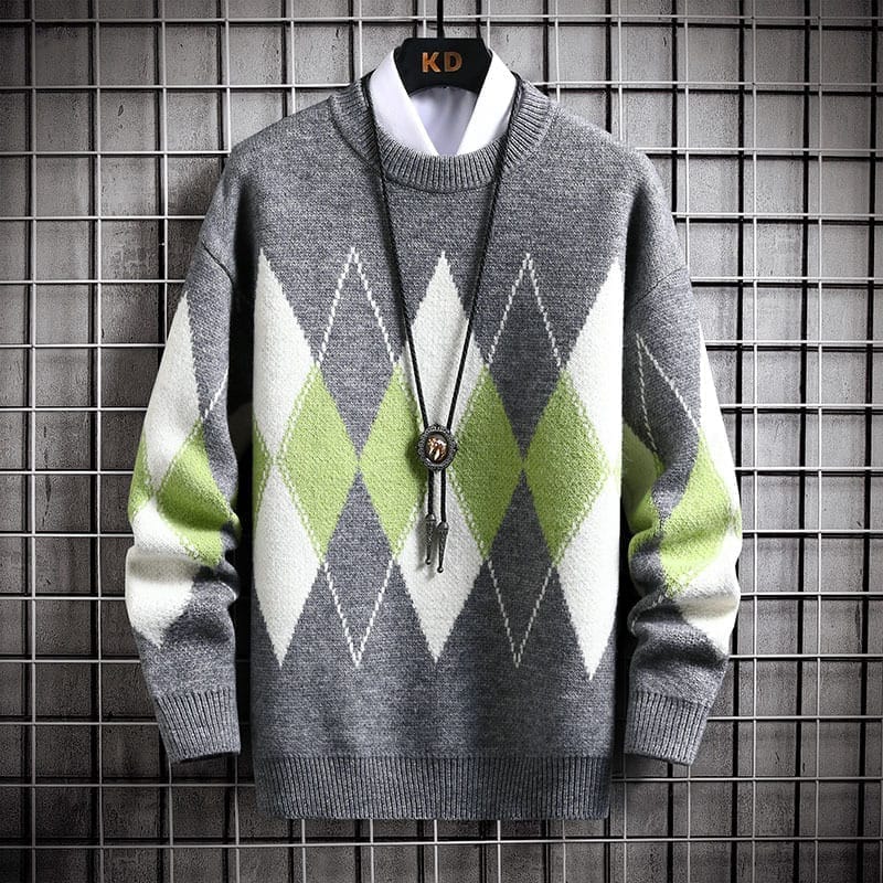 استمتع بإطلالة عصرية ودافئة مع هذه الكنزة الهندسية التي تجمع بين الأناقة والراحة!