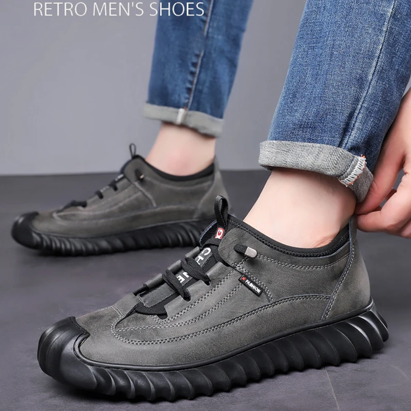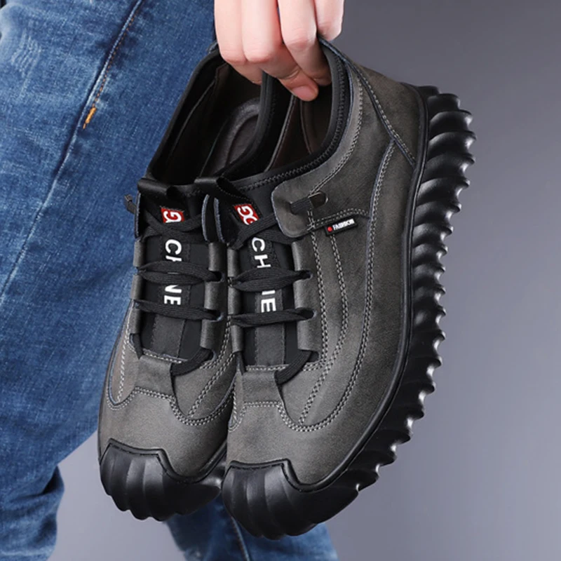 أحذية رجالية كاجوال لفصلي الخريف والشتاء، مصنوعة من جلد البقر الطبيعي بطبقة أولى، تتميز بقاعدة سفلية سميك مقاوم للانزلاق مع